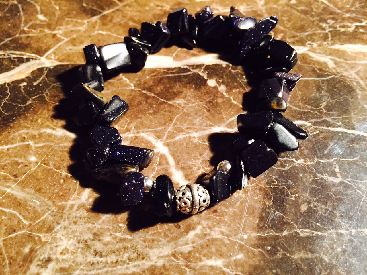 This Starry Night (Blue Goldstone) bracelet will compliment an y outfit. The navy blue color makes it great for layering. Blue Goldstone deflects unwanted energies, and is a wonderful protection stone.