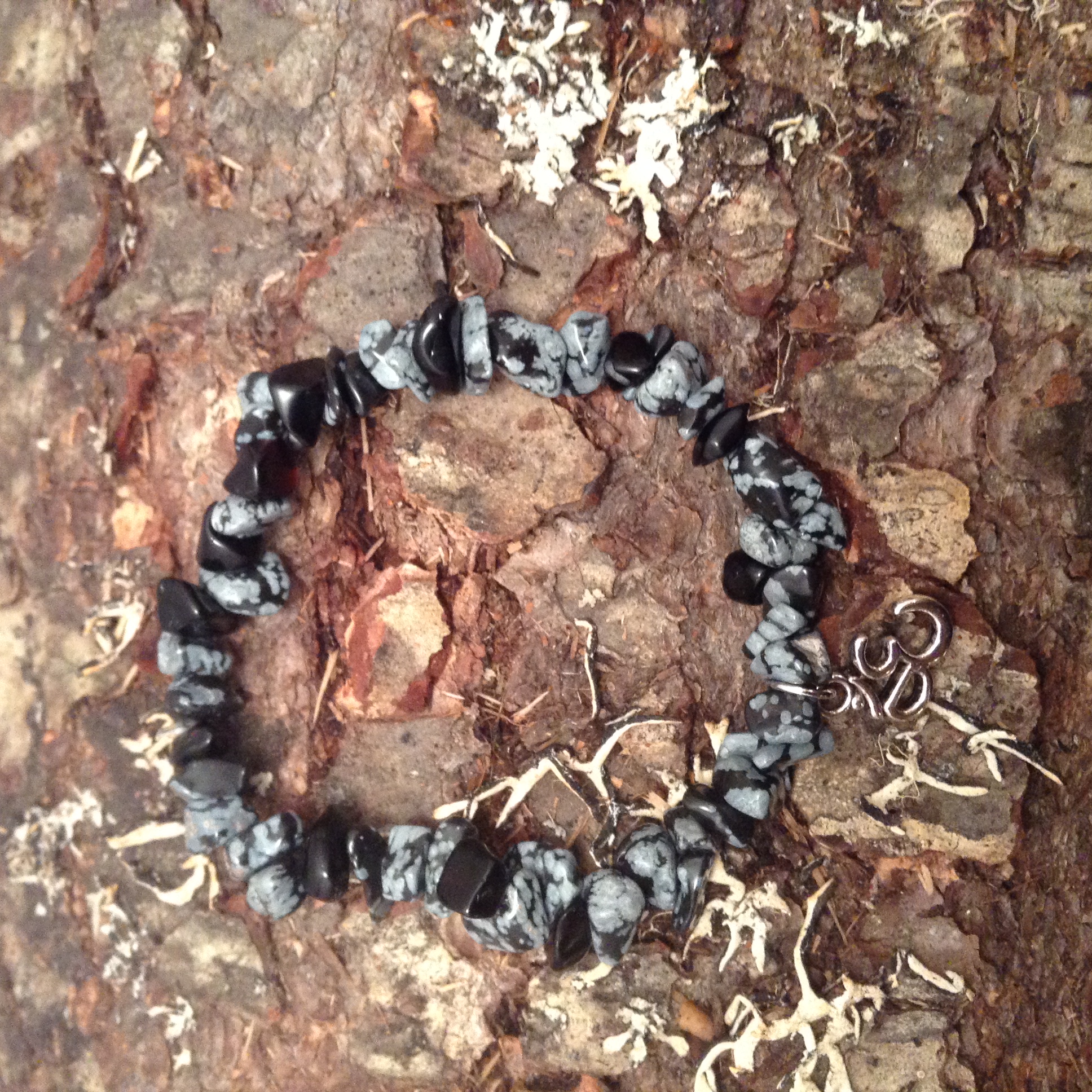 Snowflake Obsidian is used for protection, spiritual growth, and boosting the immune system. This piece is adorned with a silver Ohm charm and will complement any outfit beautifully.