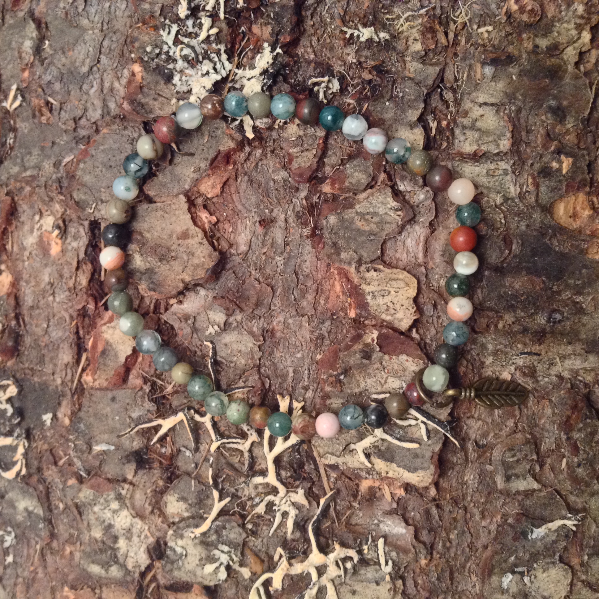 Moss Agate brings balance and emotional stability and Jasper nurtures in times of stress and promotes tranquility and wholeness. I love the neutral colors and the feeling these stones bring.